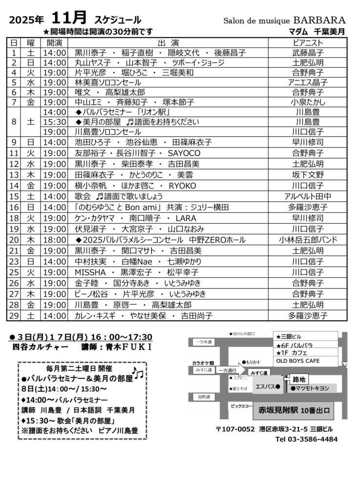 11月のスケジュールをアップしました!